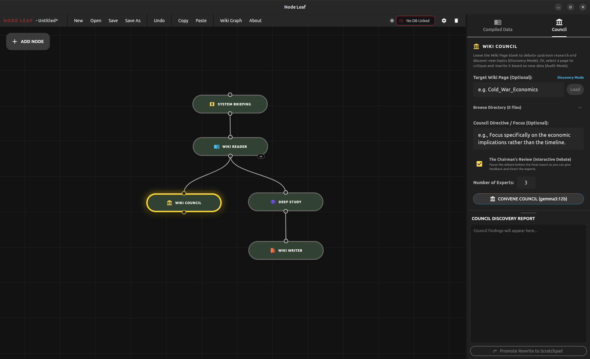 Deep research naturally converges. Once a topic is well-developed, exploration tends to narrow. The Agentic Wiki counteracts this with the Wiki Council—a simulated Mixture of Experts (MoE) designed to audit your Wiki against the broader Redleaf knowledge graph and expose blind spots.