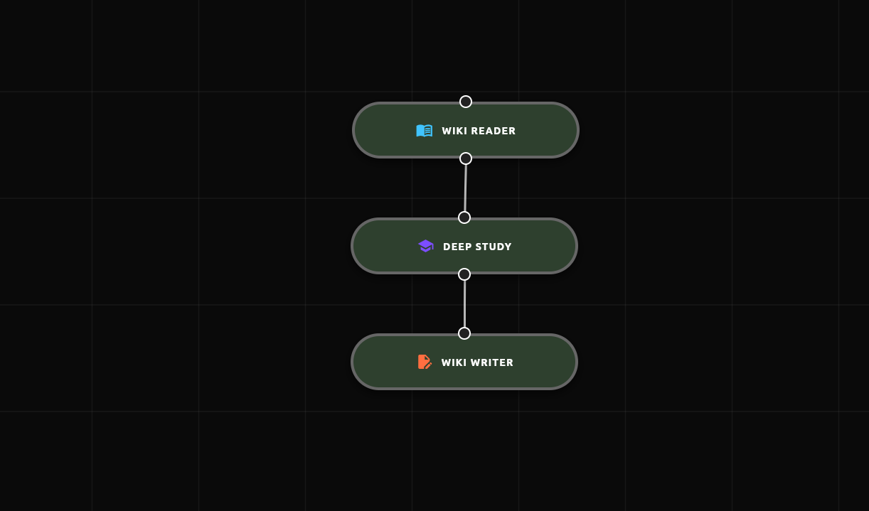 - Rewrite and Persist: The Wiki Writer integrates new findings, restructures the document, and writes it back to disk.