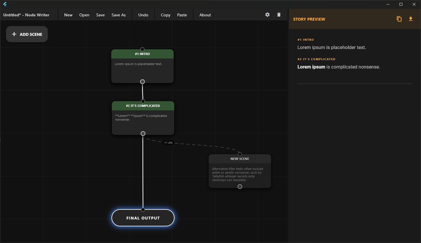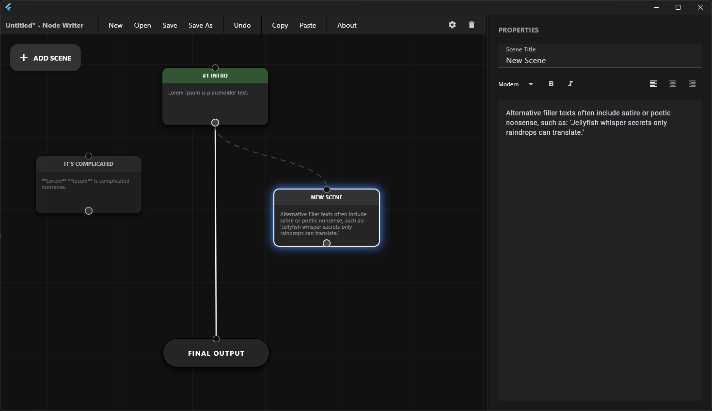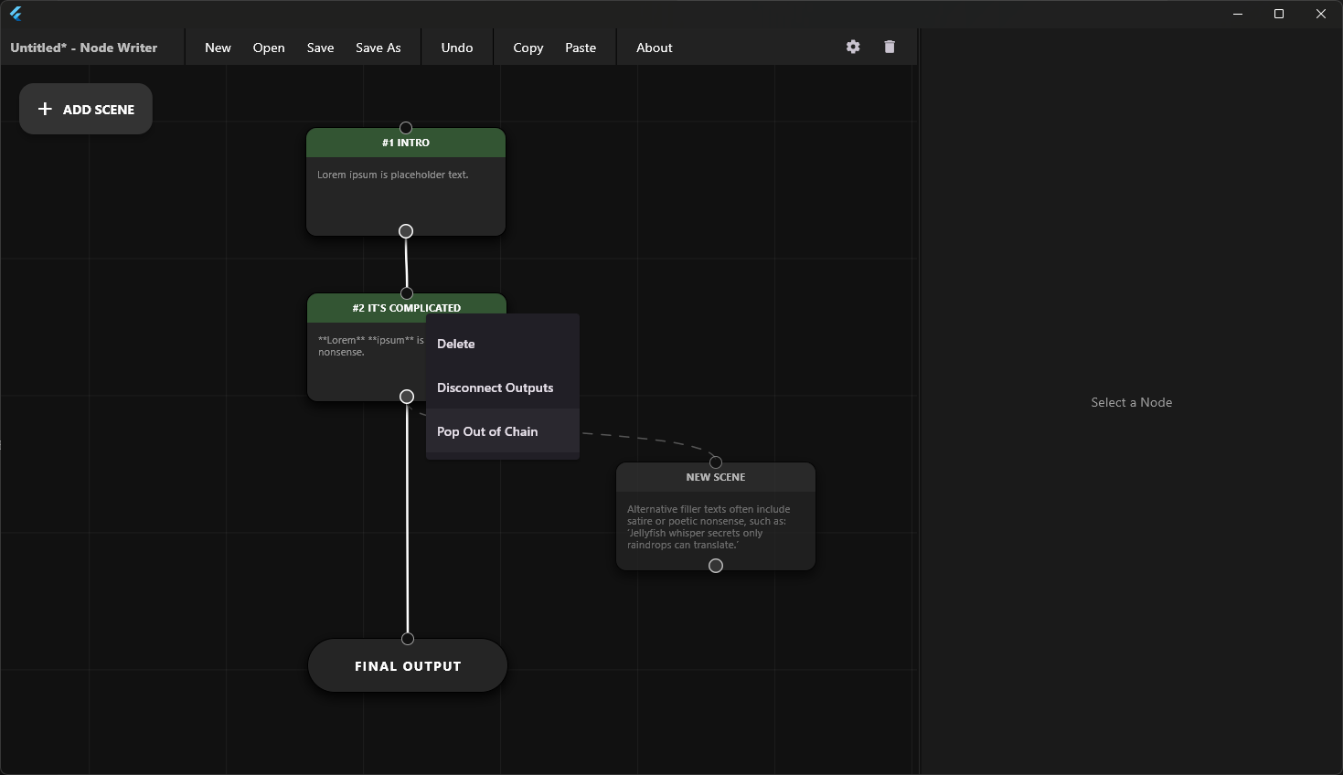 So I made Node Writer. It is not just a word processor; it is an engine that lets you build your outline, rearrange your thoughts, and experiment with different versions of your work all within a single two-dimensional canvas. Each paragraph exists as a node that you can move, edit, or connect to other nodes. This approach allows you to see your writing as a network of ideas instead of a single line of text. You can focus on the relationships between paragraphs, the flow of your story, and the structure of your argument without losing your place in the process. Node Writer turns writing into a visual and modular experience where ideas are easy to shift, expand, or compress without losing their context.