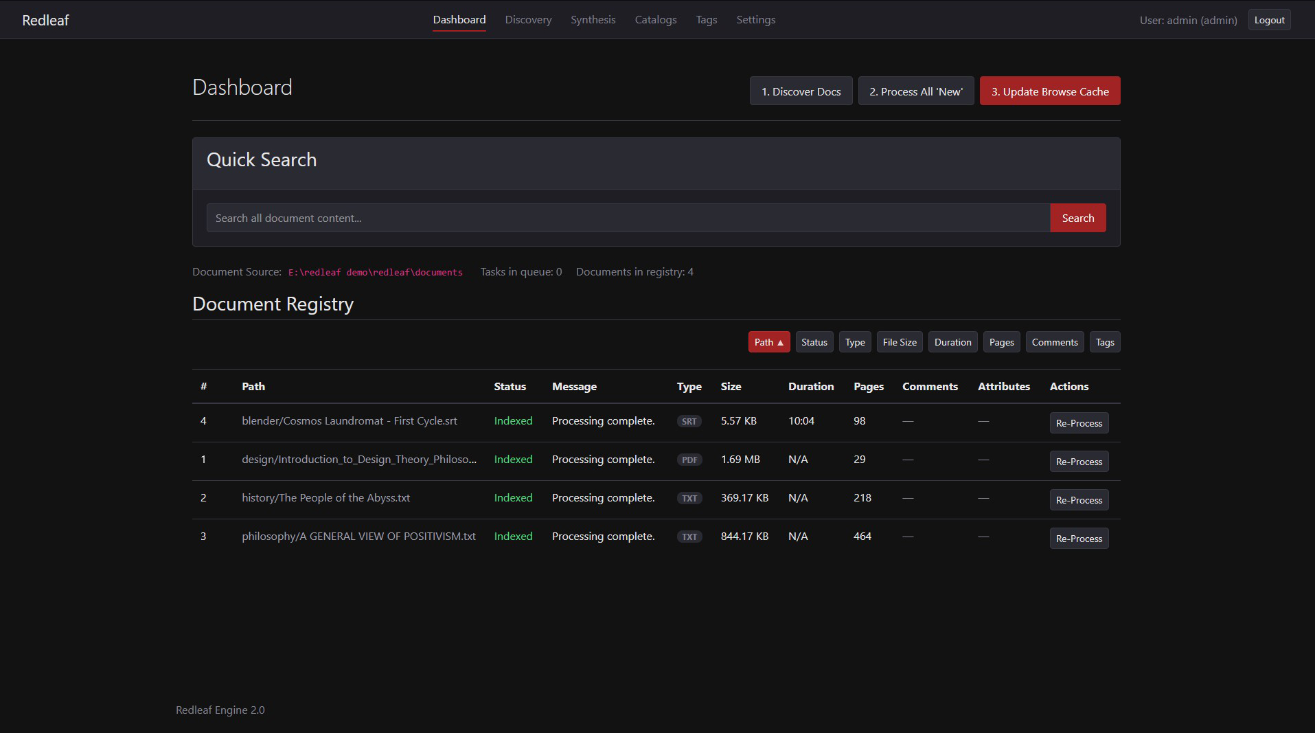 - What it does: Redleaf reads the basic file information (filename, size, modification date) and adds a new entry for each document into the registry.